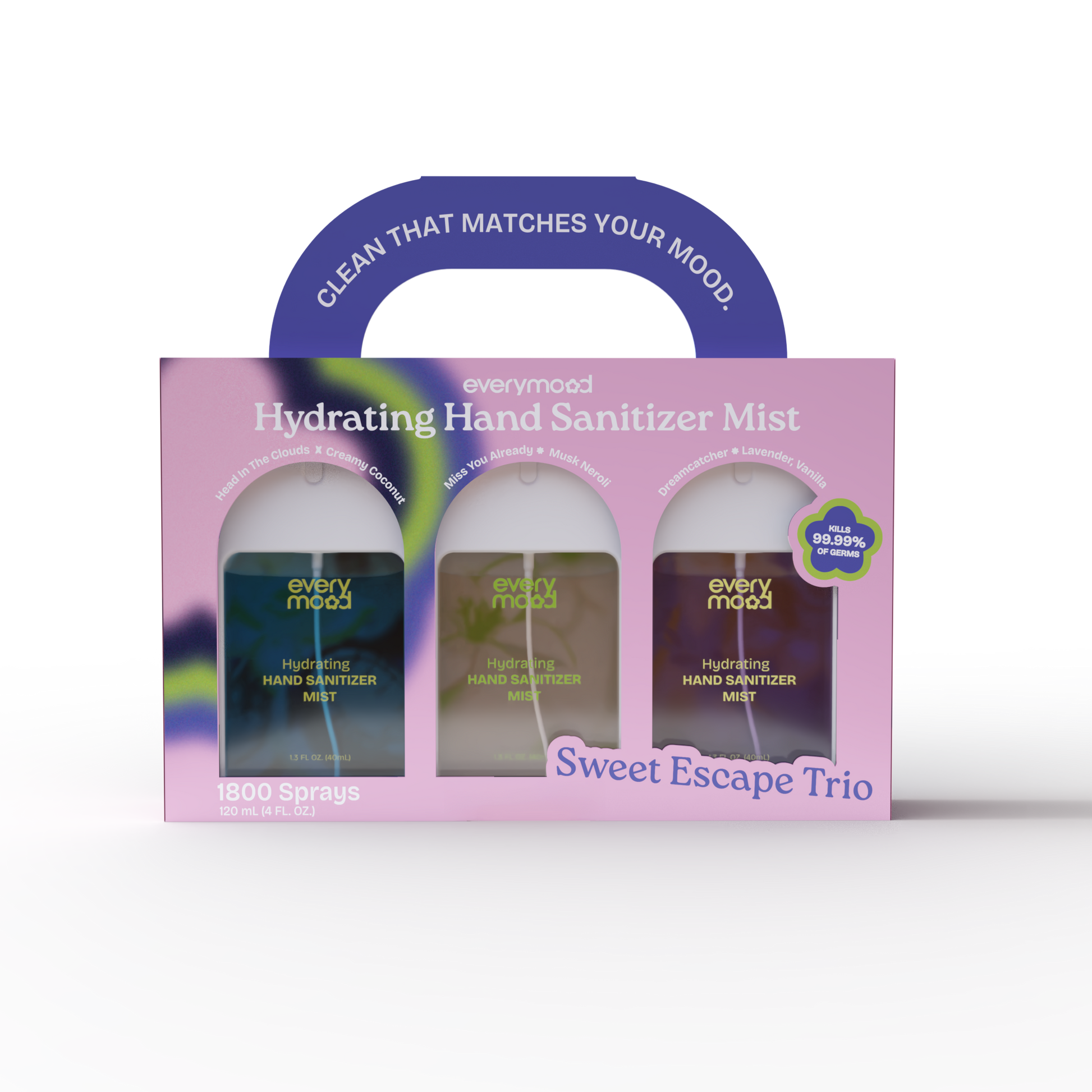 A trio of hydrating hand sanitizers that kill germs, hydrate, and leave your skin smelling heavenly. Perfect for when you need a moment of peace and relaxation, these mists deliver a soothing fragrance while keeping you refreshed and sanitized.